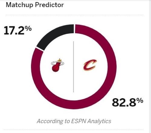 东部TOP1!ESPN预测G1骑士胜率82.8%热火仅为17.2%