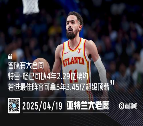 据了解,特雷-杨的合同还剩2年,下赛季约为4600万美元,最后1年为约4900万美元的球员选项。特雷-杨可以和老鹰提前续约,最多4年2.29亿美元。值得一提的是,如果特雷-杨本赛季进入最佳阵容,他将获得超级顶薪续约的资格,价值5年3.45亿美元。如果特雷-杨和老鹰没能达成提前续约,他将可以在明年休赛期选择跳出合同成为自由球员。