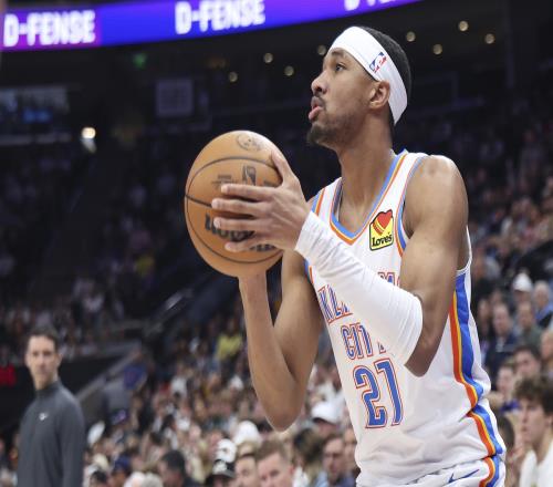 雷霆面临的最大问题,是能否在MVP热门亚历山大之外找到足够多的辅助得分手。根据PBP Stats网站的数据,当亚历山大休息时,杰伦-威廉姆斯的使用率高达34%,这使后者成为季后赛舞台上最关键的球员之一。但杰伦-威廉姆斯已是全明星级别,我们将目光投向雷霆轮换阵容的深处寻找X先生。自2月1日起,阿隆-维金斯的三分命中率为41%,场均16.2分高居队内第三,仅次于亚历山大和杰伦-威廉姆斯,甚至压过霍姆格伦。
