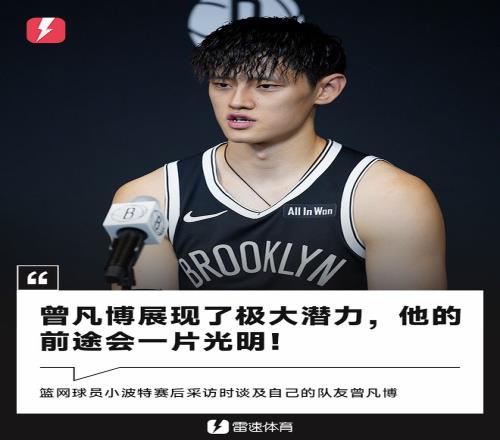 小波特:曾凡博非常出色,你知道,他在球场上确实展现出了很大的潜力,我认为他的未来会一片光明。