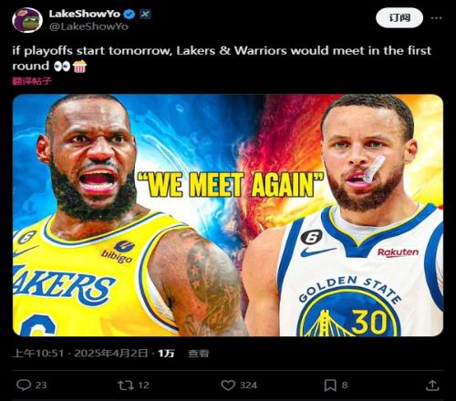 湖媒LakeShowYo发推写道:“若季后赛明天开打,我们又见面咯~”。