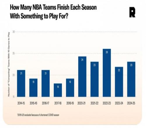 或者,你看到的其实是一个已经有1/3球队提前放弃赛季、正为乐透顺位明争暗斗的联盟?甚至某些球队正在无底线摆烂,就为博取更高概率抽中状元签,争取选中杜克大学天才前锋库珀-弗拉格的机会?