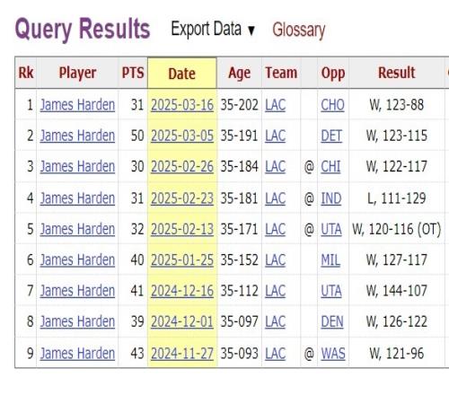 哈登此役三节就砍下30分,这是他本赛季第10次30+。根据数据统计,大胡子上一次做到单赛季至少10次30+要追溯到21-22赛季,那个赛季他10次30+。