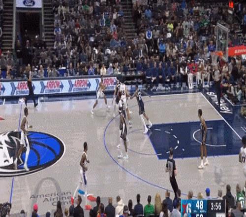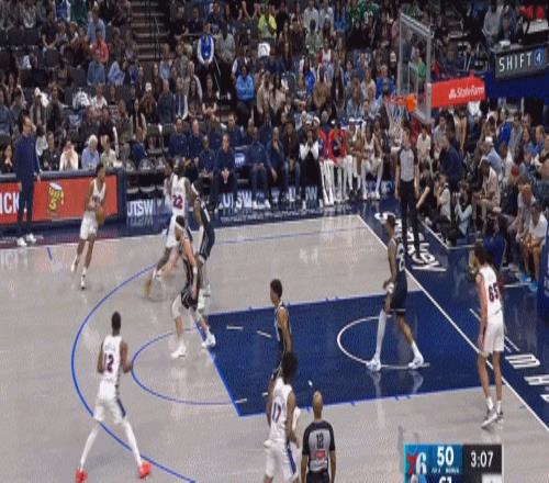 老实说这不算什么好机会——达拉斯的首发二号位被克莱锁定,东欧两人的第一替补是丁威迪,然后是喜欢持球的马绍尔,甚至是愿意甩一手远投的哈迪,于是格莱姆斯再次被挤到三分线外当配角,每场仅有7.8次出手有4.3次来自三分线外,其他的也都是空切或者反击。