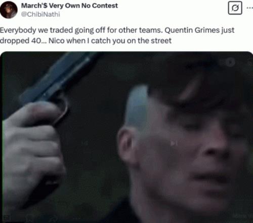 而达拉斯的悲催,或者说外界的笑料也因此而起:当非要倒贴次轮把430万的格莱姆斯送出去换800万的卡勒布-马丁的时候,他甚至没考虑过马丁还处于长期养伤期,结果最后76人补了个次轮完活,美滋滋的nico既赢得现在又赢得了2030年的未来。