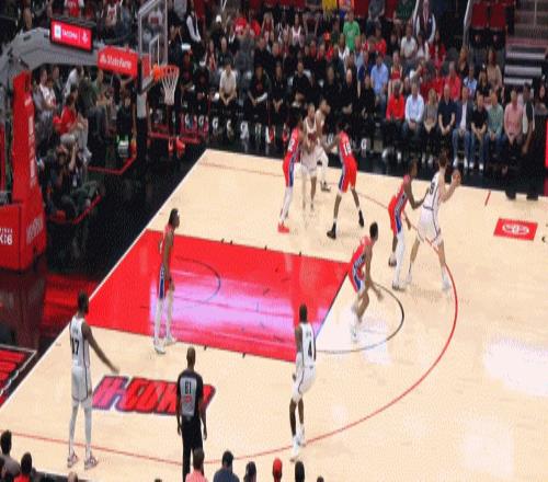 对抗把人挤开后的高抛上篮算是格莱姆斯的标志性动作了