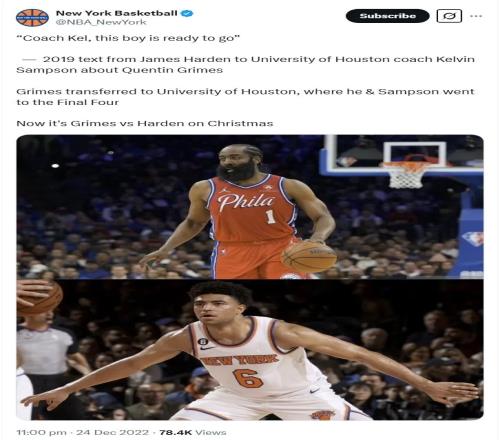 在休斯敦期间,格莱姆斯的挡拆防守和后场篮板能力大大提高了,这两项后来成为了他在NBA的立足之本。2021年选秀大会,他在首轮第25顺位被尼克斯摘走——对于曾经被看好拿下前五顺位的天才来说,这个结果多少有些让人失望,但格莱姆斯心态很好,这得益于他在学生时代一直养成的性格,格莱姆斯坚信,就算两年前他以高顺位进入NBA,该学的东西还是要从头学起,从一个较低的起点出发不一定是坏事。