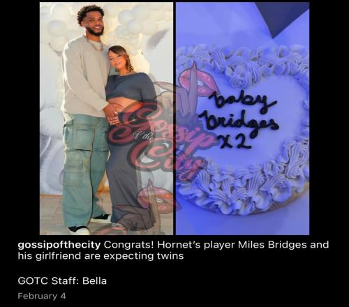 体育资讯03月22日报道宣称 黄蜂球员“小桥”迈尔斯-布里奇斯的前女友米歇尔-约翰逊(Mychelle Johnson)宣布怀孕五个月,是个女孩儿,第四胎的爹还是小桥。