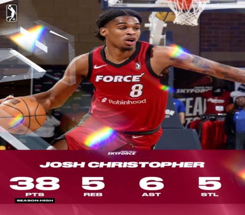 此役,前火箭球员克里斯托弗(现效力于苏福尔斯天力、热火下属G联盟球队)出战39分18秒,投篮22中13,三分9中7,罚球2中2,爆砍38分5篮板6助攻5抢断2盖帽。