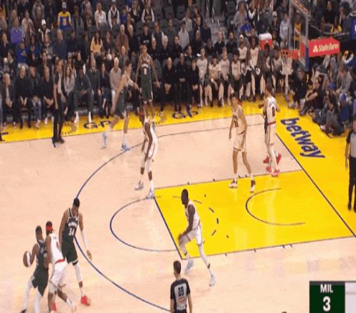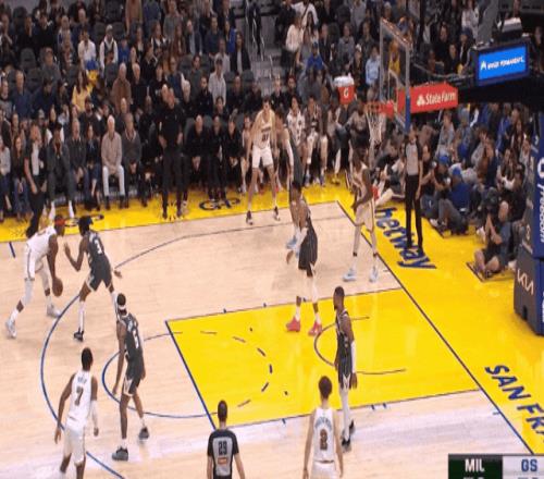 今天勇士,尤其是追梦针对扬尼斯的防守极佳,虽然大概也有扬尼斯肘伤的缘故,但勇士今天的布阵,卡了利拉德的一个小BUG。