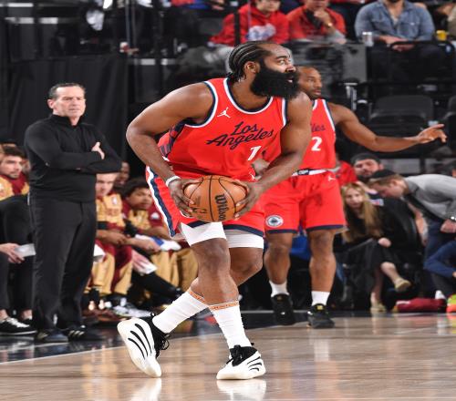 其一,后场防守弱环过多,加兰、米切尔、大伤后的斯特鲁斯、杰罗姆、梅里尔五个后场防守都不好,这一战被哈登、卡子哥、鲍威尔、博格达诺维奇点菜打烂了。这也是骑士在季中交易引进亨特的意义,亨特是203公分的大体型侧翼,防守上至少能抵抗一下,骑士后场普遍能突能投能处理球,但防守确实辣眼睛,季后赛遇上强力持球手必然被点菜。