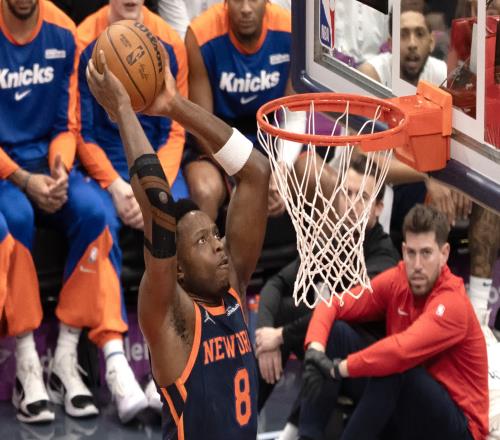 尼克斯在缺少王牌布伦森的情况下拼到最后一刻值得尊敬,唐斯和阿努诺比表现可圈可点,唯一的隐患则是板凳席深度严重不足。首发五虎的纸面实力毋庸置疑,季后赛想走更远只拼首发显然不够,上季止步西部半决赛的掘金就是典型案例,板凳席内部打磨无疑是尼克斯在剩余常规赛阶段最重要的事。