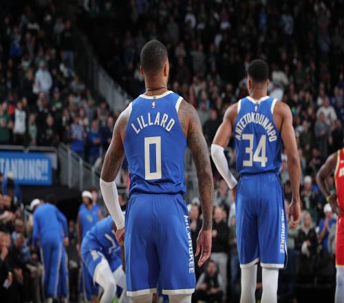 这种“好但不顶级”的特点也延伸到了雄鹿的最强阵容中。他们值得一些宽容,因为他们进行了一笔重要的交易,用米德尔顿换来了库兹马。但是他们仍然没有一个高使用率且净效率为正的阵容,雄鹿本赛季仅有的两个至少打了300个回合的阵容净效率都是负值。利拉德、普林斯、库兹马、字母哥和大洛佩斯的阵容净效率为+8.5,但这个阵容还没有达到300回合的门槛,必须在小样本的背景下看待,其他效果不错的阵容情况也差不多。字母哥是联盟前五的球员,而利拉德是少数几位能在季后赛压力下表现自如的控卫之一。也许这两人实力足够强大,可以克服其他方面的平庸表现。