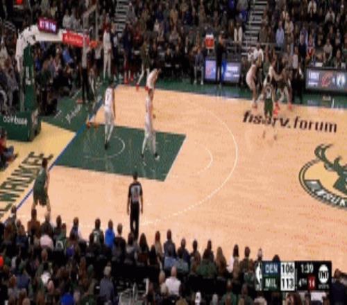 在2月28日对阵丹佛掘金队的比赛第四节还剩1分34秒时,密尔沃基雄鹿队的大前锋扬尼斯-阿德托昆博在三分线外接到传球,稍作停顿调整。