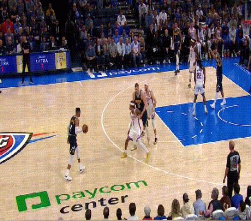 防守重心无法覆盖每一个人,必然有所取舍。雷霆当然很重视对穆雷的单防,但有些球员的有些夜晚,只要你让他拿球一打一,也就约等于防不住他。欧文、穆雷这种杀手型后卫,尤其如此。约基奇拿走雷霆大部分的防守专注,被放的半射手们打开了底角局面,中路的舞台为穆雷搭起,而他成功改写了比赛进程。