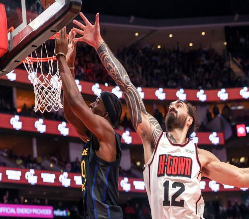 很多球队习惯在轮换时间降低高度打小球,火箭却反其道而行之。随着亚当斯摆脱伤病困扰,身体和竞技状态渐入佳境,他成了乌度卡双塔试验中的关键人物。