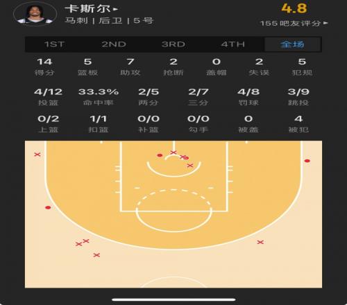 马刺4号秀 斯蒂芬-卡斯尔 登场29.6分钟