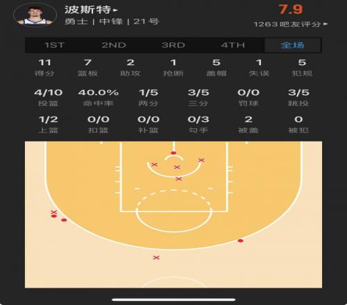 勇士52号秀 昆滕-波斯特 登场25.4分钟