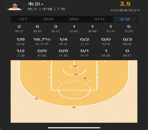 热火15号秀 克雷尔-韦尔 登场23.0分钟