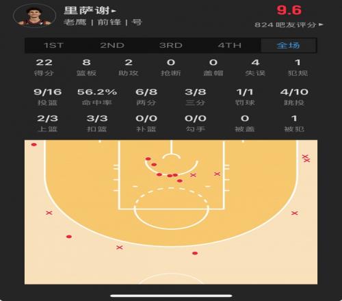 老鹰状元秀 扎卡里-里萨谢 登场31.3分钟