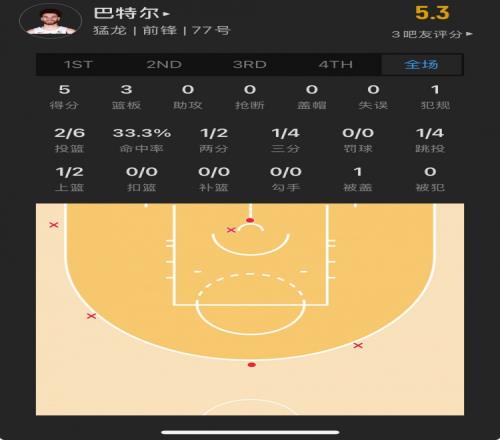 猛龙落选秀 贾米森-巴特尔 登场12.0分钟