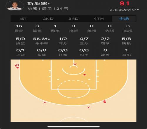 灰熊53号秀 卡梅隆-斯潘塞 登场19.8分钟