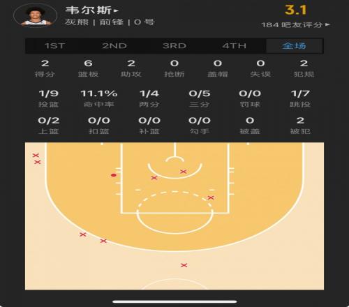 灰熊39号秀 杰伦-韦尔斯 登场23.3分钟