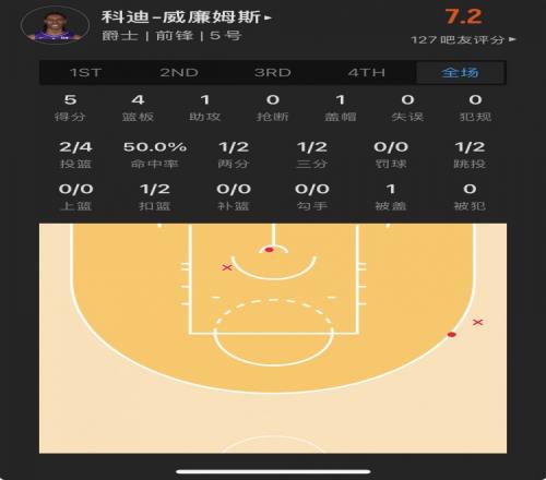 爵士10号秀 科迪-威廉姆斯 登场16.3分钟