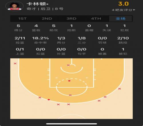 奇才14号秀 卡尔顿-卡林顿 登场25.9分钟