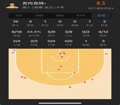 湖人17号秀 道尔顿-克内克特 登场41.0分钟