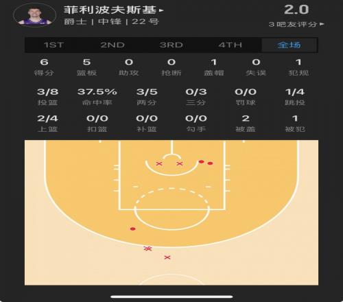 爵士32号秀 凯尔-菲利波夫斯基 登场16.4分钟