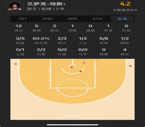 国王落选秀 艾萨克-琼斯 登场18.9分钟