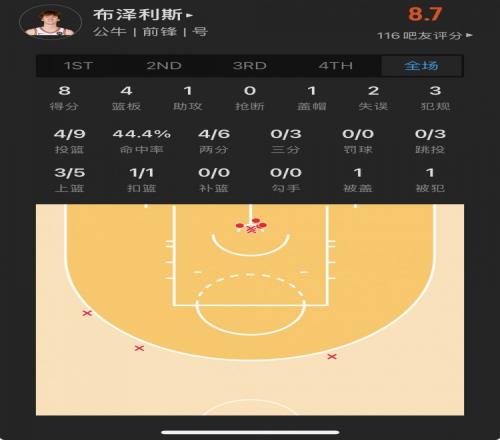 公牛11号秀 马蒂斯-布泽利斯 登场24.2分钟