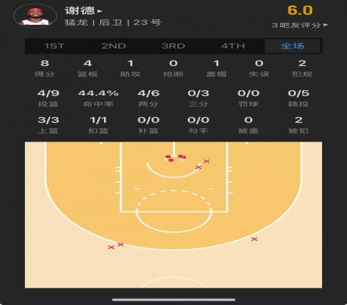 猛龙45号秀 贾马尔-谢德 登场26.6分钟