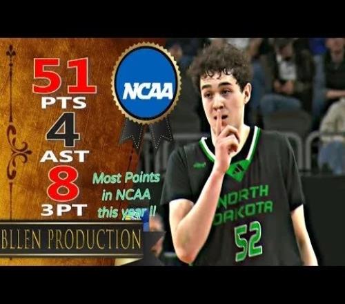 此役,北达科他大学后卫特雷森-伊格尔斯塔夫表现超级神勇,砍下本赛季NCAA一级联盟首个单场50+得分。