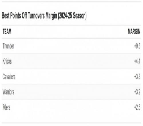 15、当雷霆能以巨大优势赢得失误战时,也会在利用失误得分方面占据巨大优势。雷霆在利用失误得分方面领跑联盟:他们通过对手失误得分为联盟最多(场均22.4分),同时因自身失误丢分最少(场均12.9分),这一项数据就使得他们每场比赛净胜9.5分,其他球队甚至不到这一数据的一半。