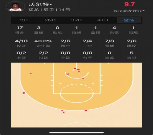 猛龙19号秀 贾科比-沃尔特 登场28.3分钟