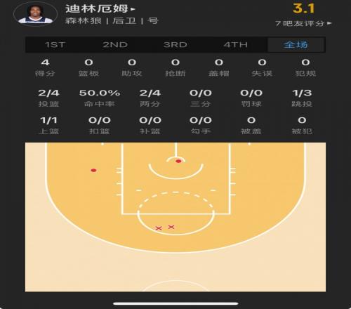 森林狼8号秀 罗布-迪林厄姆 登场3.2分钟