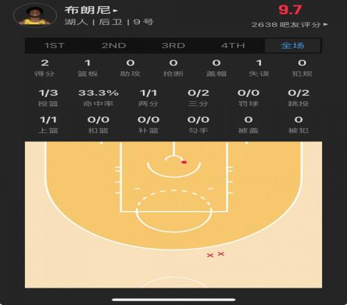 湖人55号秀 布朗尼-詹姆斯 登场4.0分钟