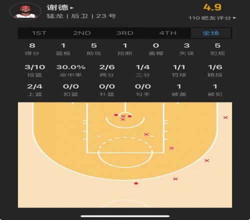 猛龙45号秀 贾马尔-谢德 登场21.8分钟