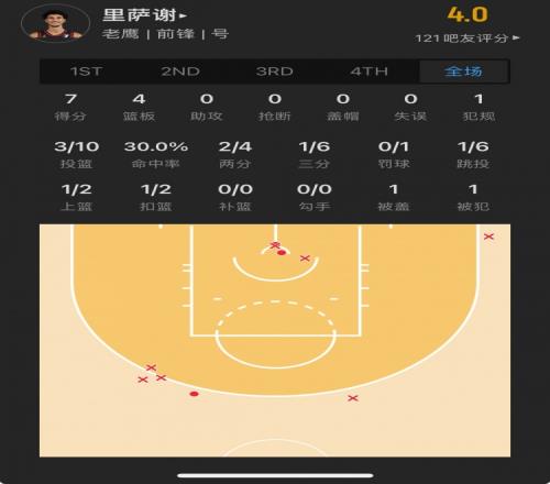 老鹰状元秀 扎卡里-里萨谢 登场25.0分钟