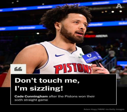 赛后活塞球星康宁汉姆接受了采访,谈到自己目前的状态,康宁汉姆说:“别碰我,我现在热得发烫。”