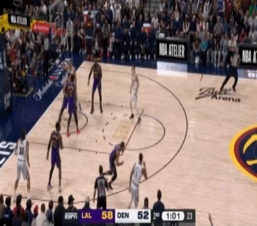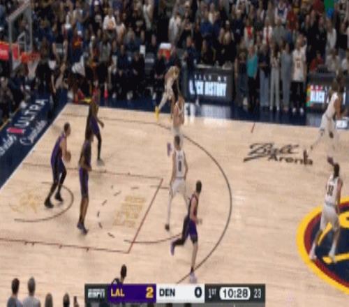 体育资讯2月23日报道宣称 NBA常规赛,湖人半场63-54领先掘金。