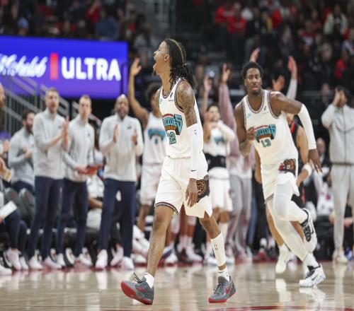 灰熊上场比赛不敌雷霆,四连胜被终结后以35胜17负的战绩排在西部第二位,球队本赛季的表现不错,攻防效率都是联盟前十位,尤其是进攻端火力凶猛,场均能够轰下123.5分联盟第一,全队共有六人场均得分上双,还有三人超过9分,不过当家球星莫兰特个人的攻击欲望有所下降,得分仅有20.5分。