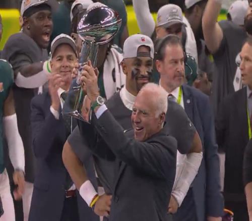 体育资讯02月10日报道宣称 费城老鹰40-22击败堪萨斯酋长,夺得队史第二个超级碗冠军。费城老鹰老板杰弗里-卢里现场观战并和球员一起庆祝夺冠。