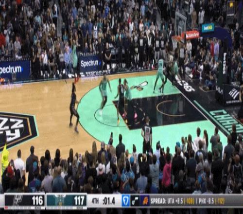 比赛最后1.4秒,福克斯命中了一记高难度三分球,但裁判通过回看确认最后进球超时。黄蜂惊险拿下比赛胜利。