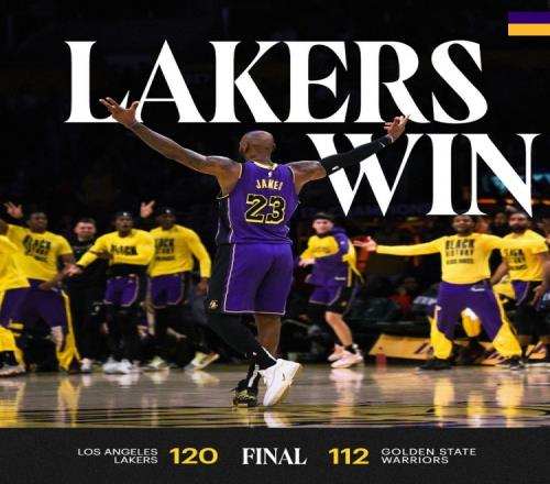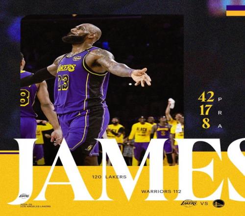 体育资讯2月7日报道宣称 NBA常规赛,湖人主场120-112力克勇士取得四连胜,赛后詹姆斯登上湖人赢球海报封面。