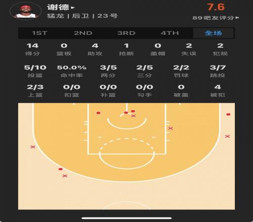 猛龙45号秀 贾马尔-谢德 登场30.5分钟