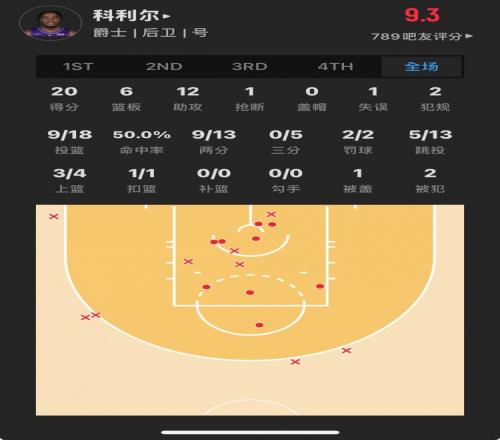 【菜鸟】科利尔20+6+12奇才乔治17+7埃迪5中5得13分14板2助2帽