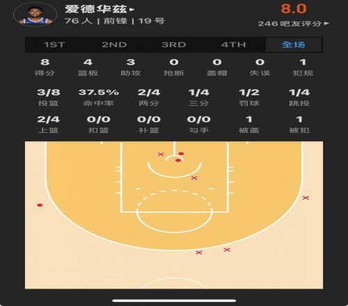 76人落选秀 贾斯汀-爱德华兹 登场24.0分钟